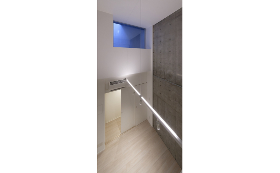 ブルーのマテリアルをはじめ、ガラス張りのクローゼットやシャープなライン状の間接照明が、感性を刺激する洗練された空間を創り上げました。