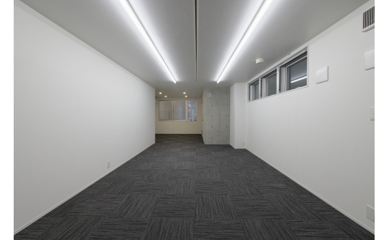 モノトーンでまとめたフロアは、スクエアのブースとランダムに並ぶライン照明が調和するクリエイティビティに溢れる空間です。 デザイナーズシェアオフィス。