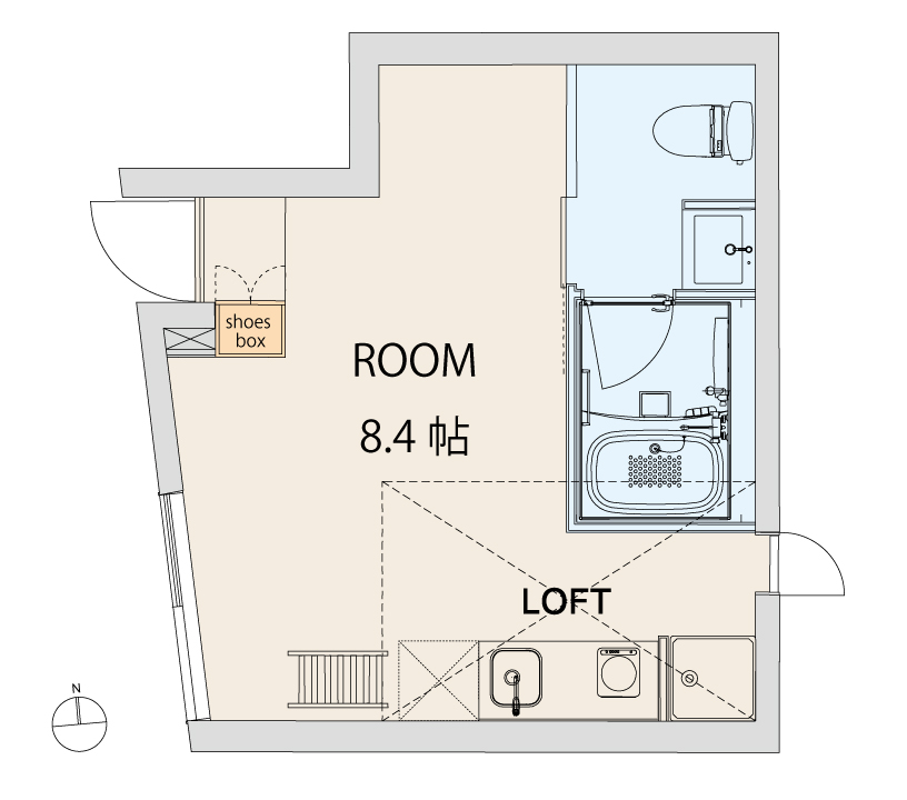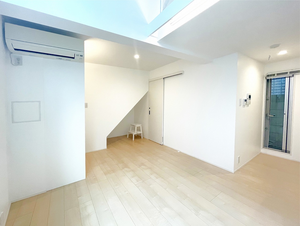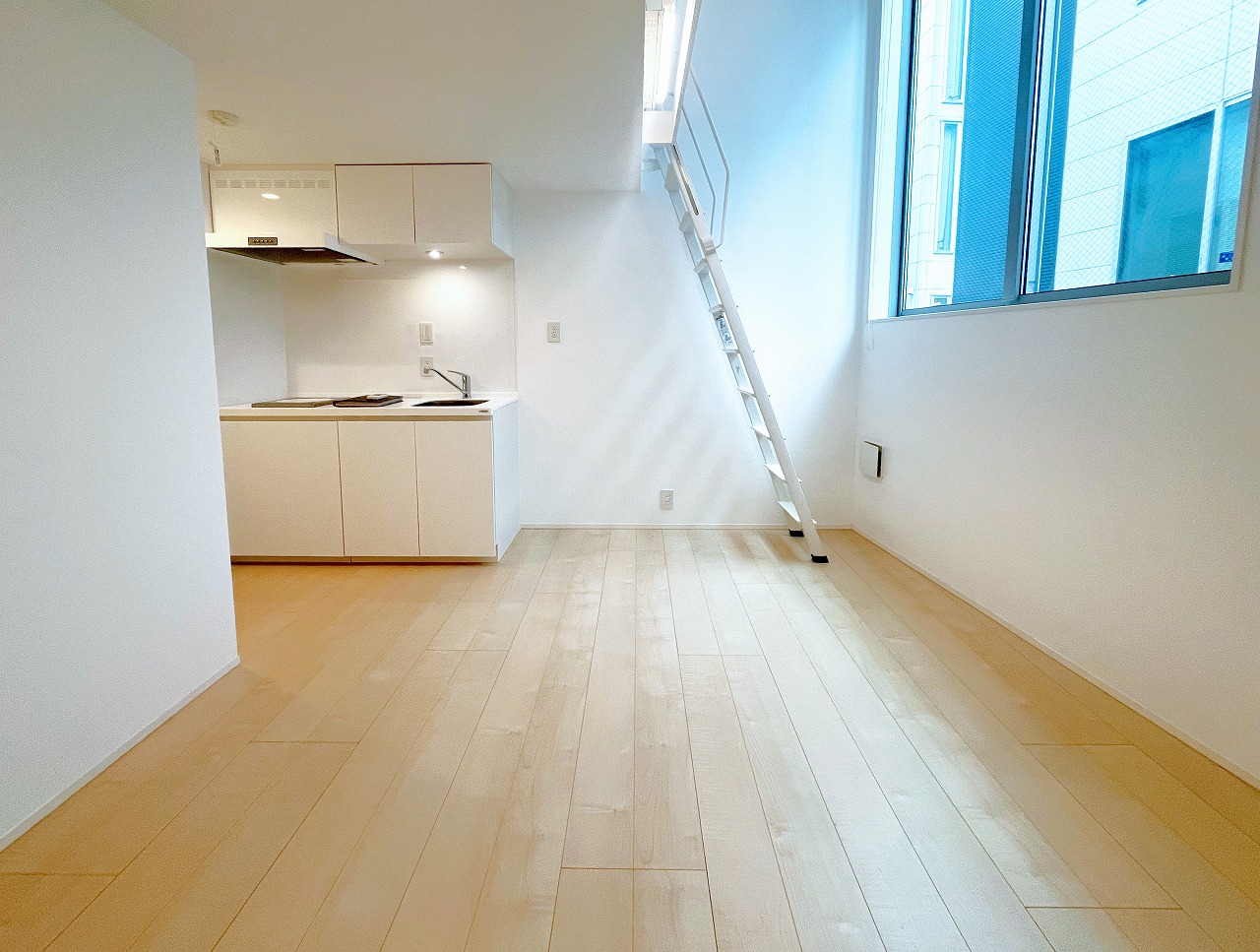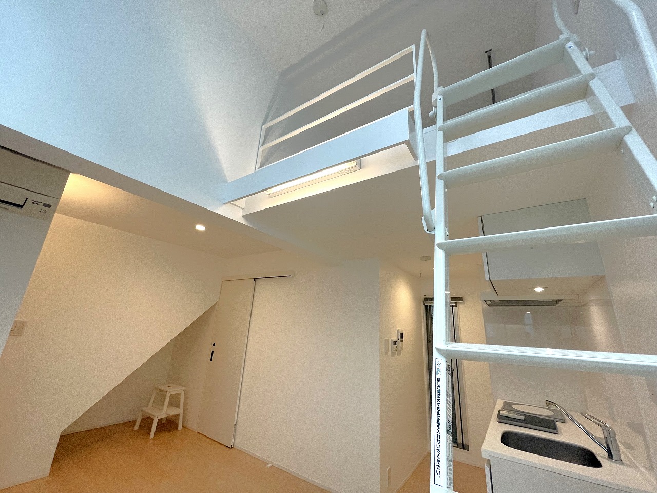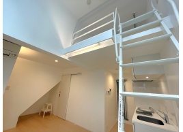 天井の高さを生かしたロフト付のお部屋。 大きな窓から入る光と風が心地よい開放感を演出します。独立洗面台付き。