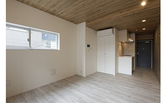 ●コンパクトながら、程よく区切られたゾーニングで機能的な間取り。 ●窓ガラスまで7mの奥行が生み出すダイナミックな空間。 ●奥にはスタイリッシュなパウダールームと、シャワーブースを配置。 ※103号室と304号室は、「和モダン」スタイルで設えた特別な2室となります。